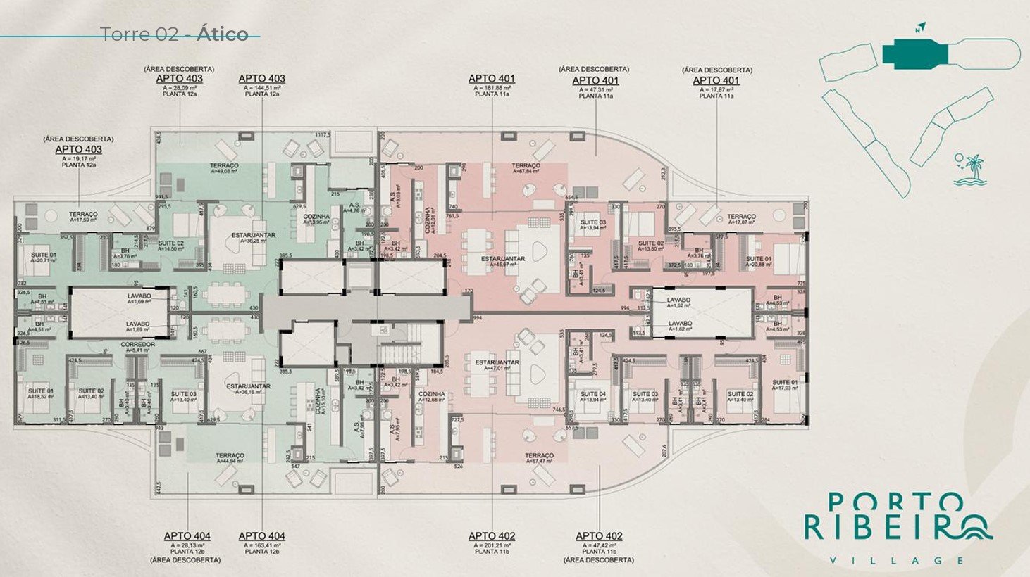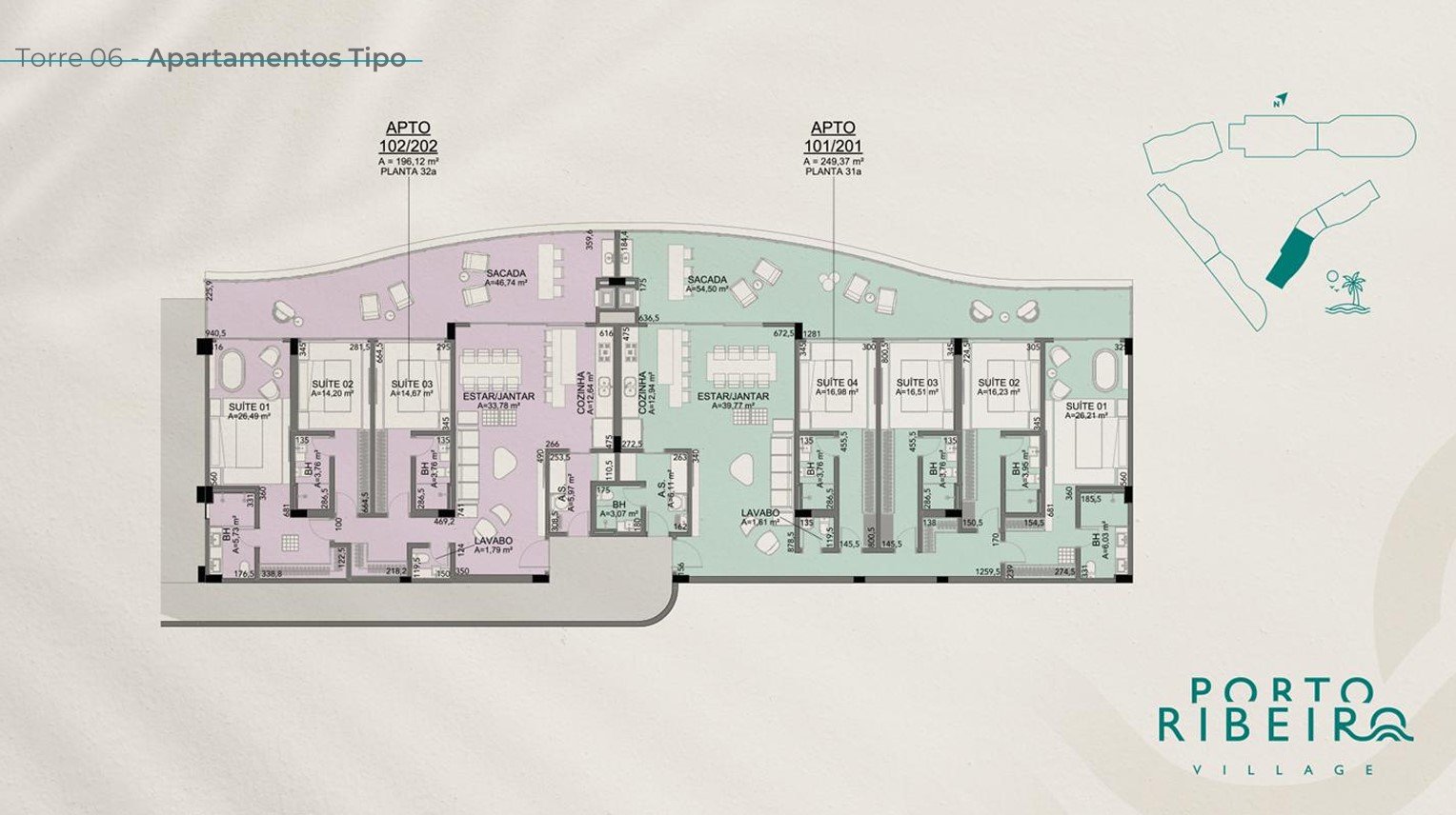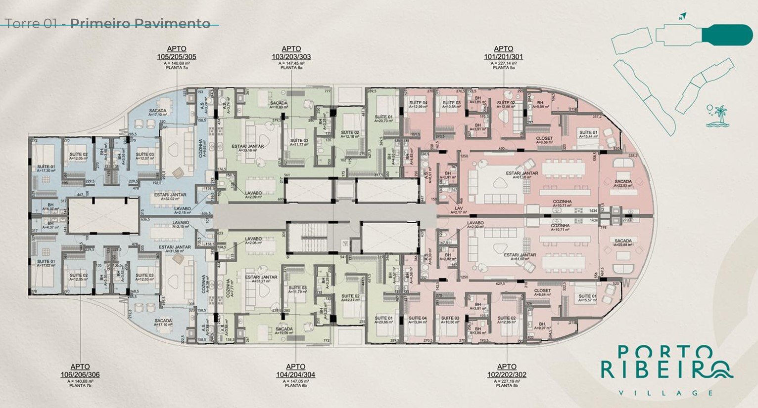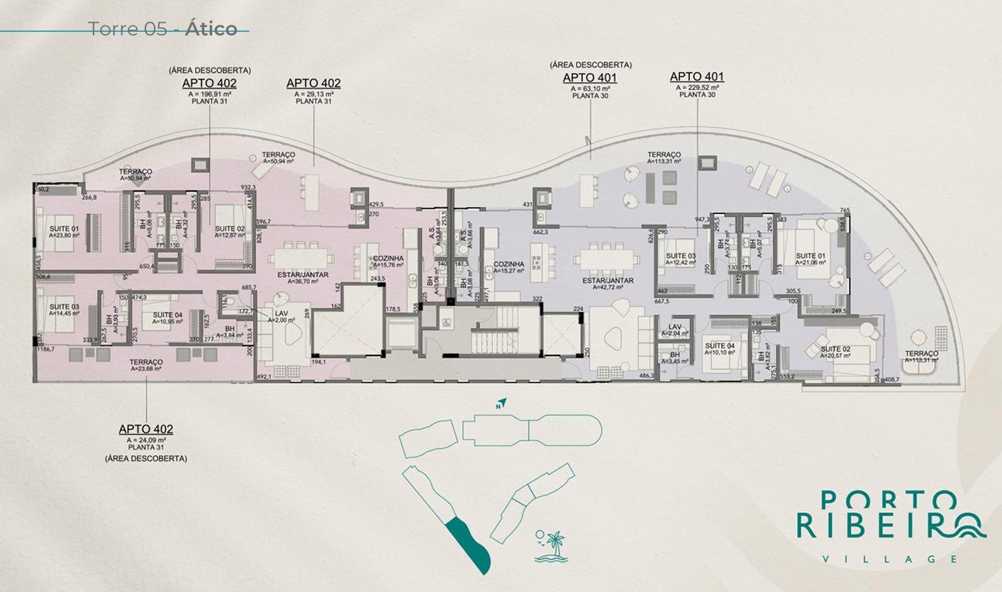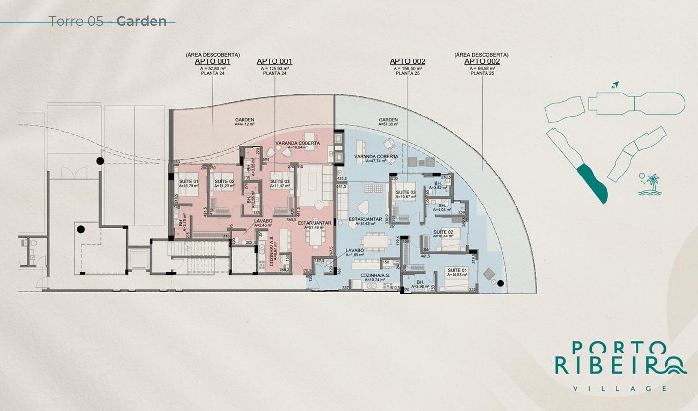 O Porto Ribeiro Village conta com uma implantação arquitetônica pensada para oferecer uma experiência de bem-estar, conforto e sofisticação, assinada pelo renomado escritório Doria Arquitetura. Cada detalhe foi planejado para maximizar a vista, a privacidade e a integração com o ambiente natural.